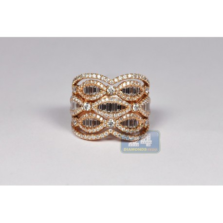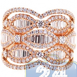 18K Rose Gold 2.30 ct Baguette Diamond Womens Vintage Ring
