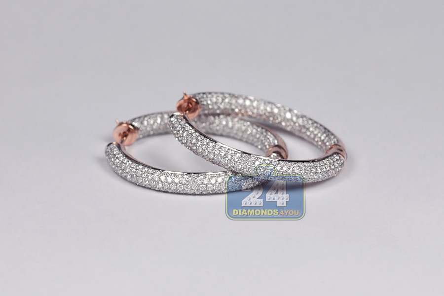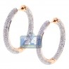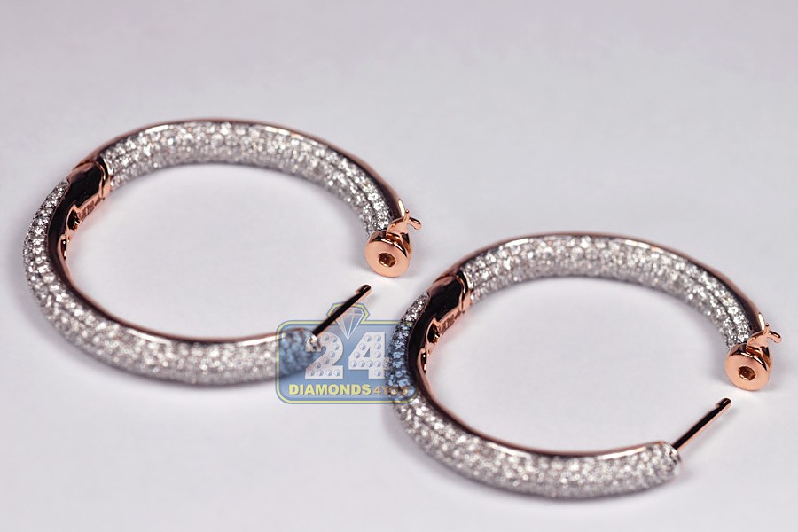 18K Rose Gold 3.43 ct Full Diamond Round Hoop Earrings 1.2 Inch