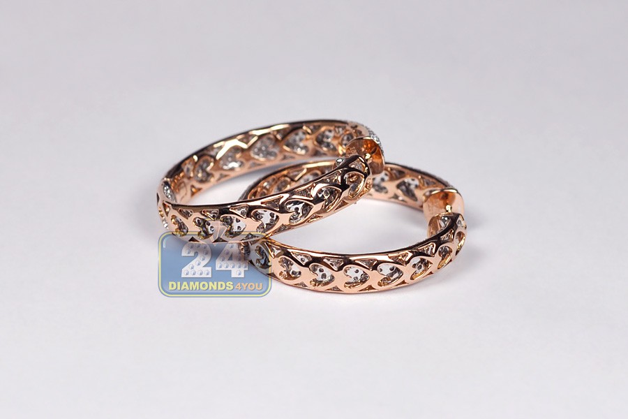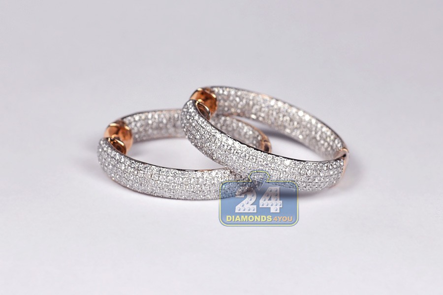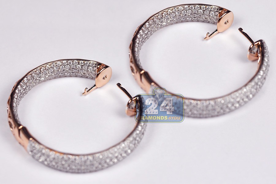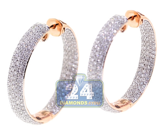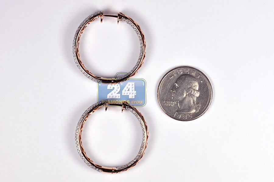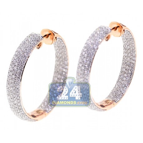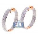 18K Rose Gold 3.66 ct Diamond Round Hoop Earrings 1 1/4 Inch