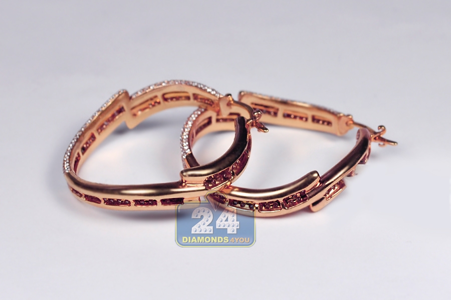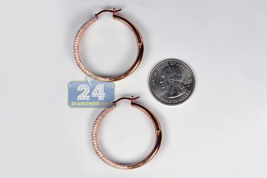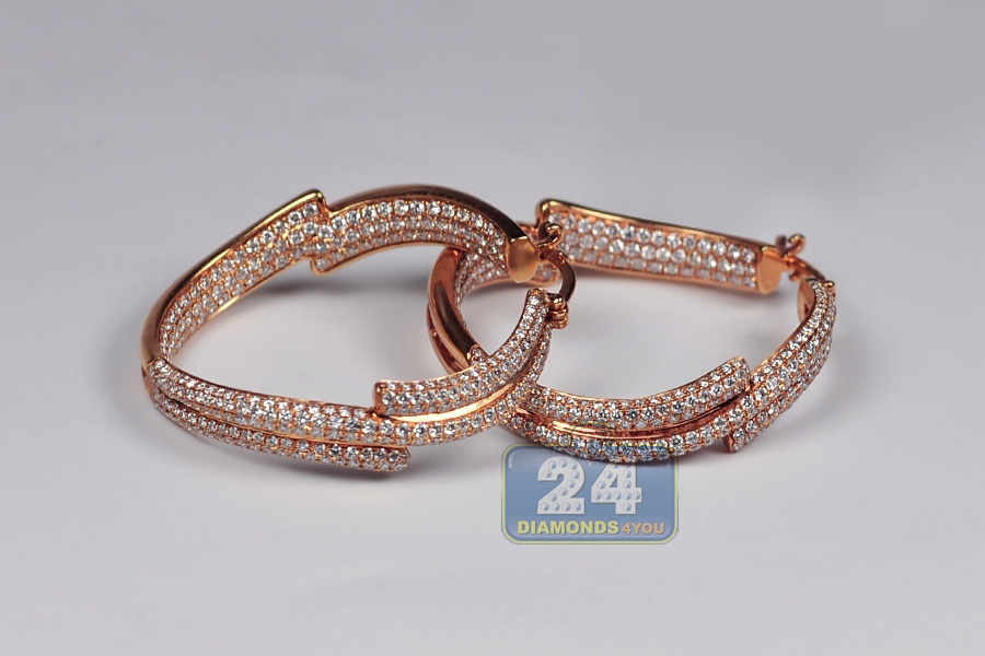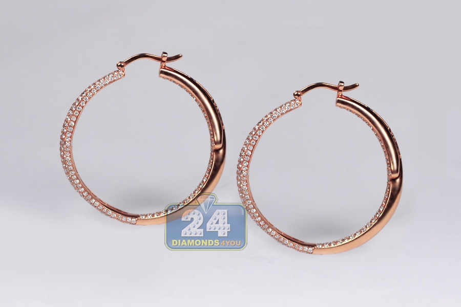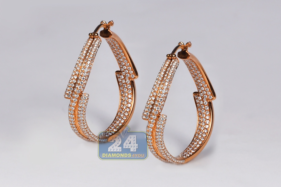 18K Rose Gold 3.94 ct Diamond Womens Round Hoop Earrings