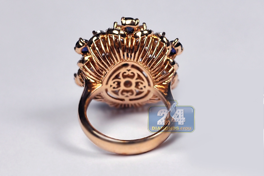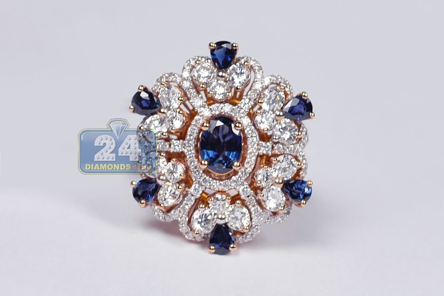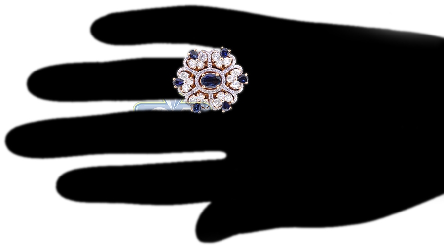 18K Rose Gold 4.91 ct Diamond Sapphire Womens Flower Ring