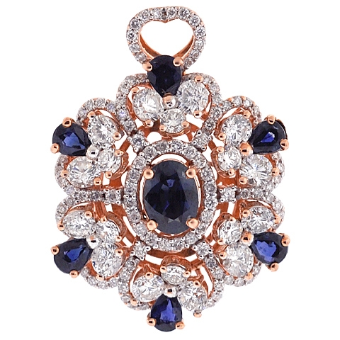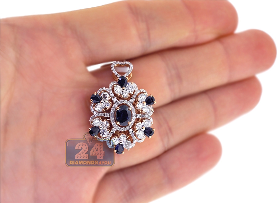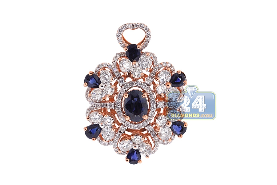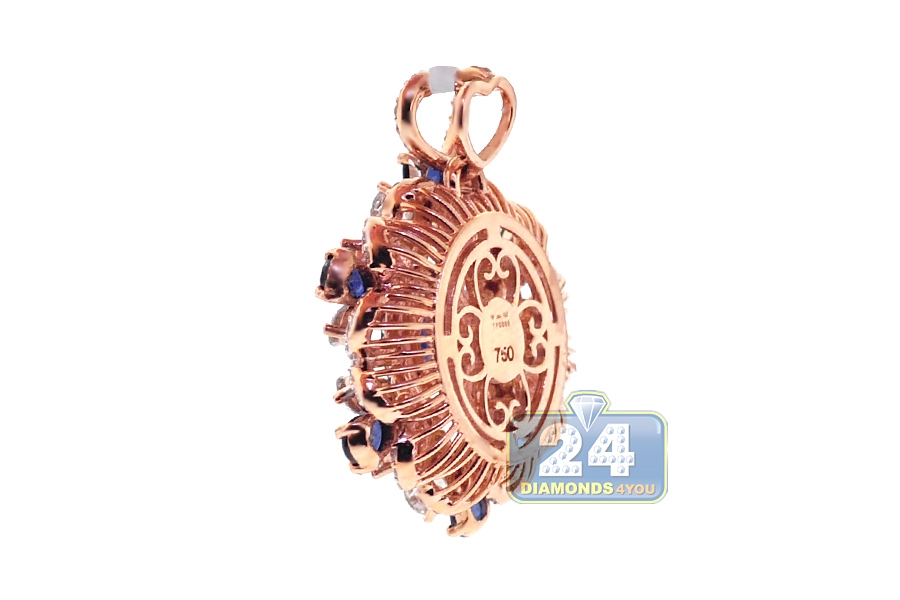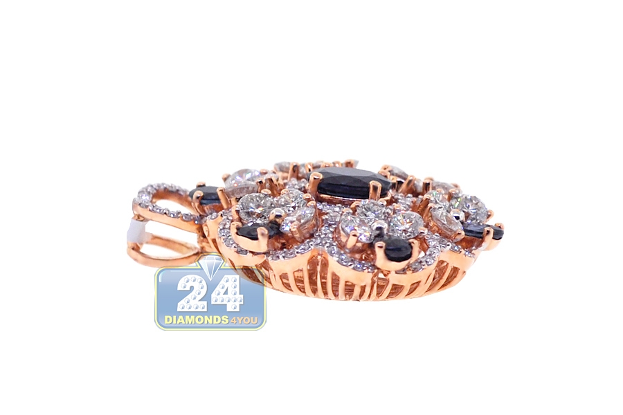18K Rose Gold 5.24 ct Diamond Sapphire Womens Flower Pendant