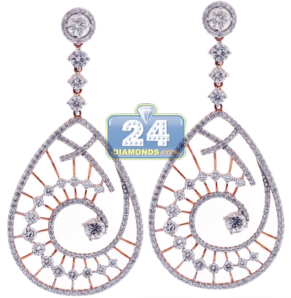 18K Rose Gold 6.08 ct Diamond Evil Eye Dangle Earrings 2.5 inch