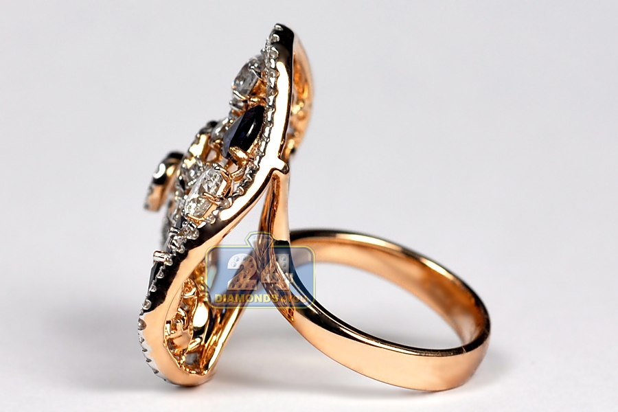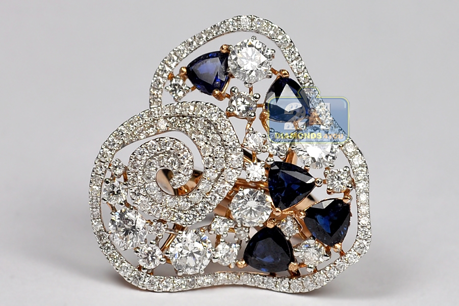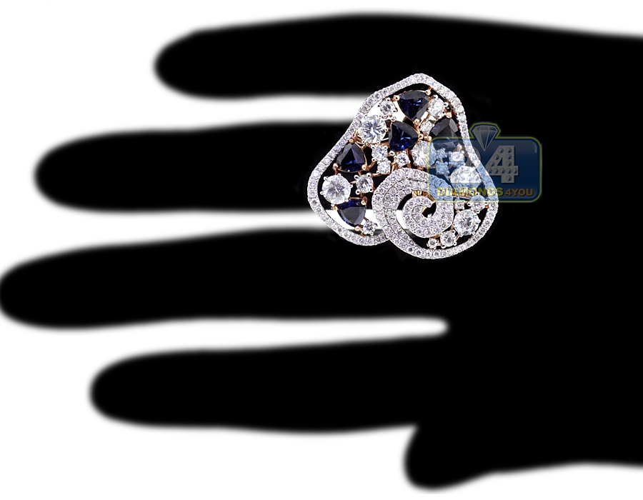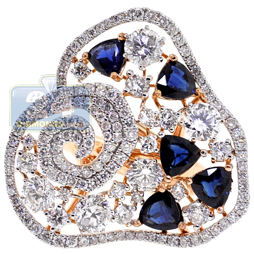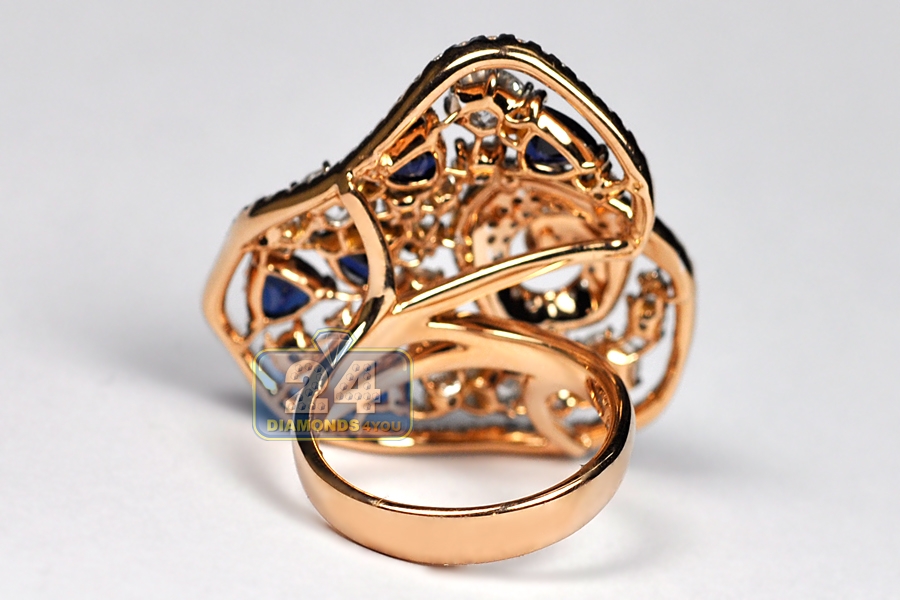 18K Rose Gold 6.69 ct Diamond Blue Sapphire Womens Flower Ring