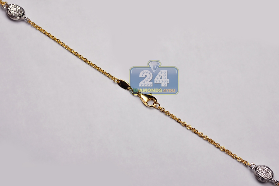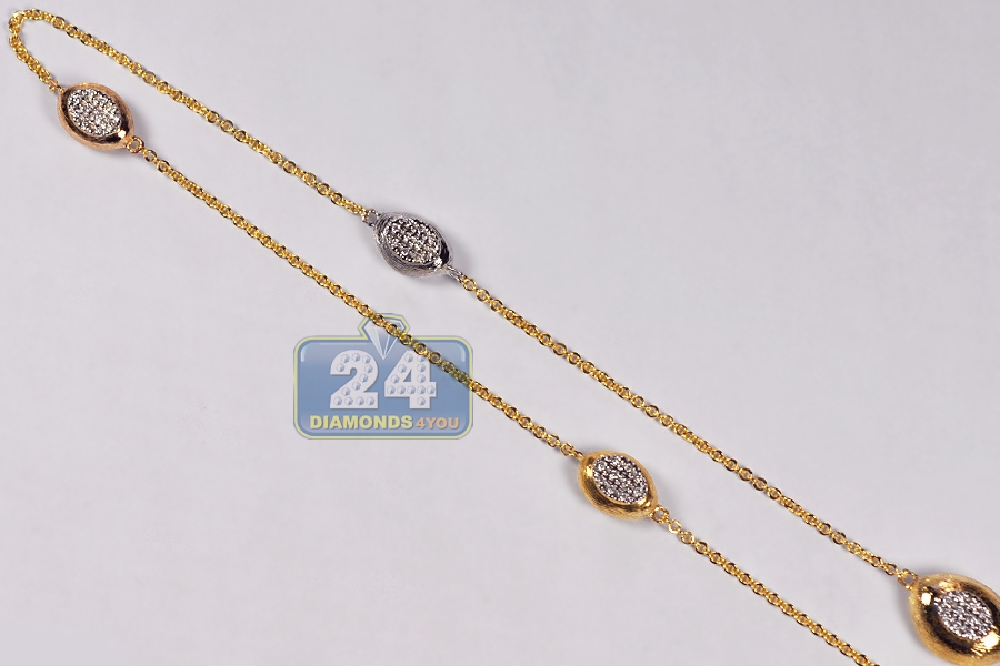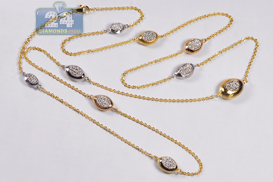 18K Three Tone Gold 0.59 ct Diamond Bead Station Necklace