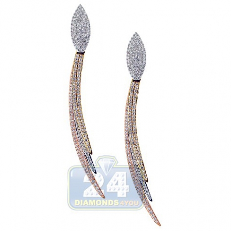 18K Three Tone Gold 3.28 ct Diamond Drop Line Earrings