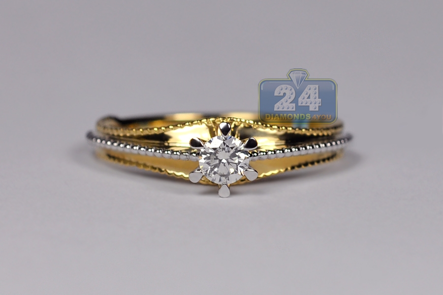 18K Two Tone Gold 0.25 ct Diamond Engagement Solitaire Ring