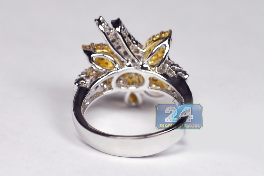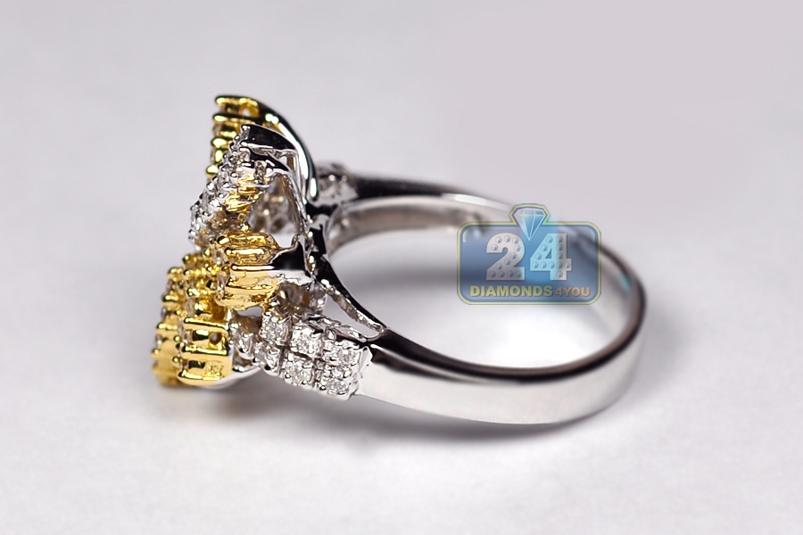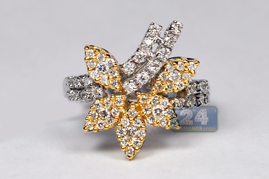 18K Two Tone Gold 0.79 ct Diamond Womens Floral Ring