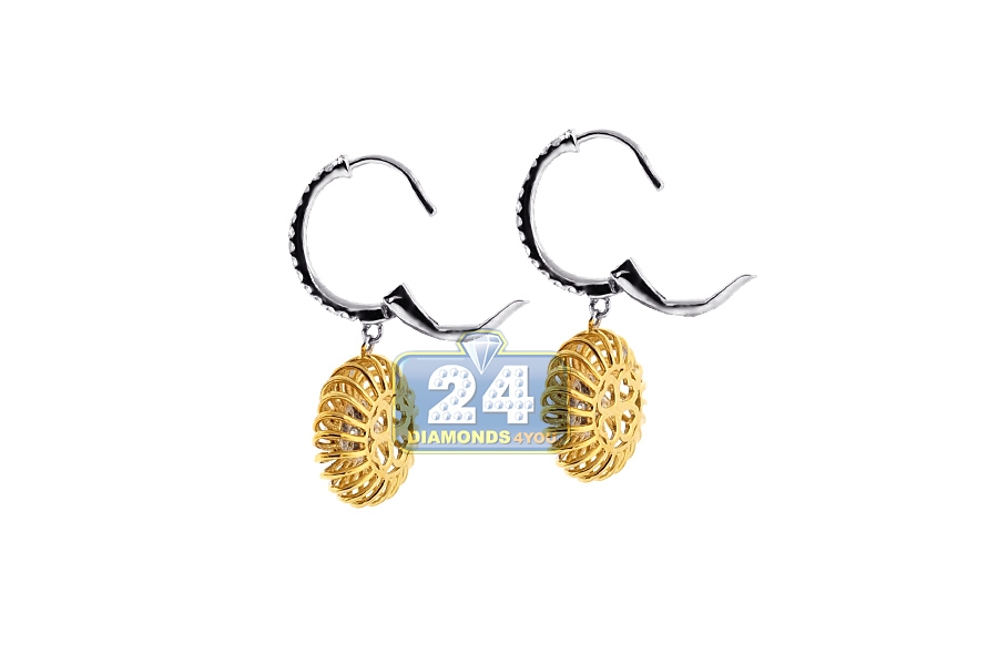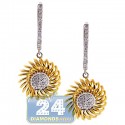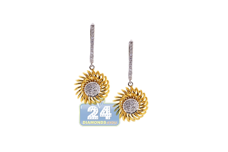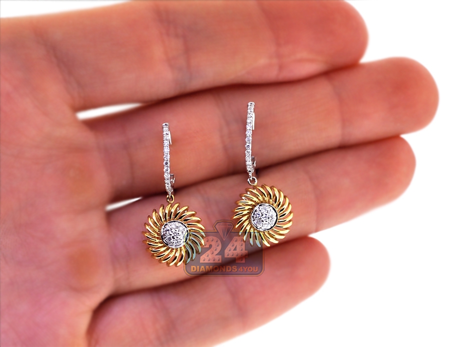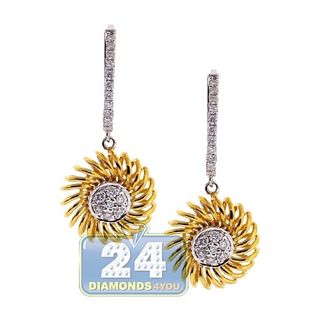 18K Two Tone Gold 0.35 ct Diamond Womens Halo Drop Earrings