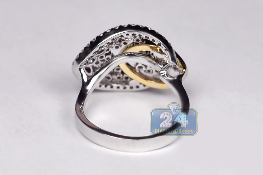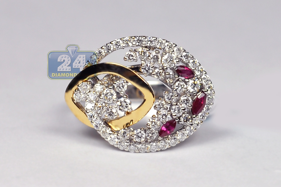 18K Two Tone Gold 1.12 ct Diamond Ruby Womens Floral Ring