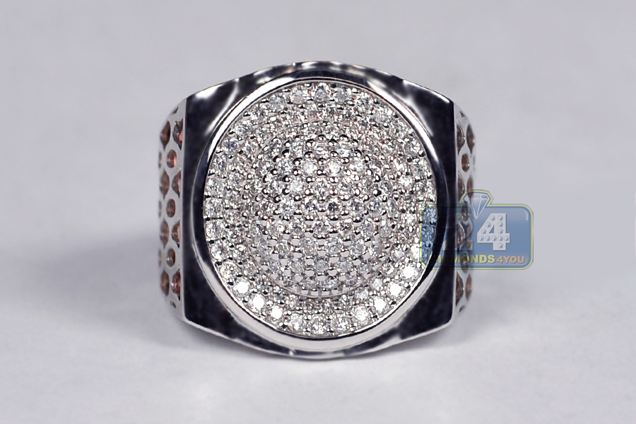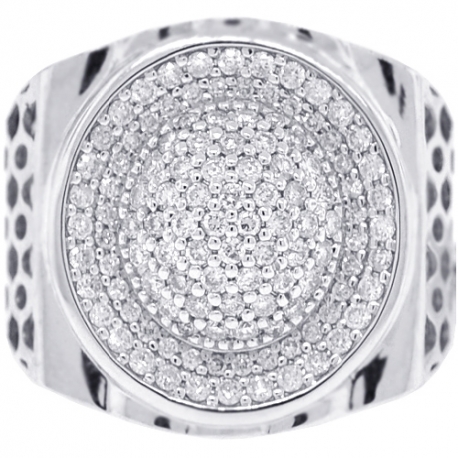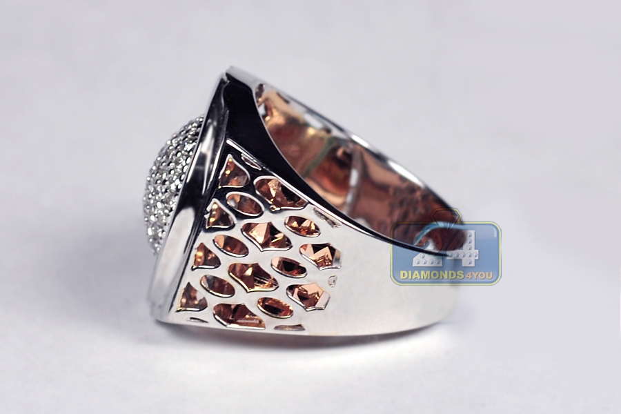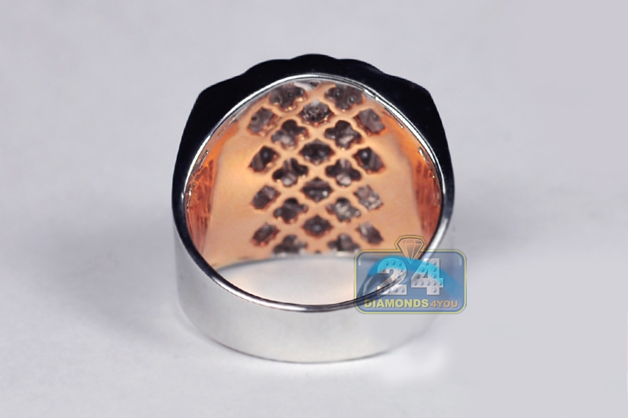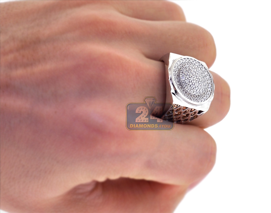18K Two Tone Gold 1.20 ct Diamond Pave Mens Ring