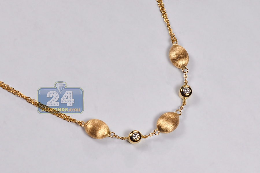 18K Two Tone Gold 1.22 ct Diamond Bead Station Womens Necklace
