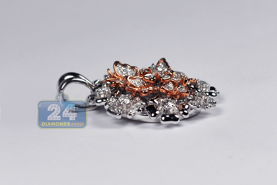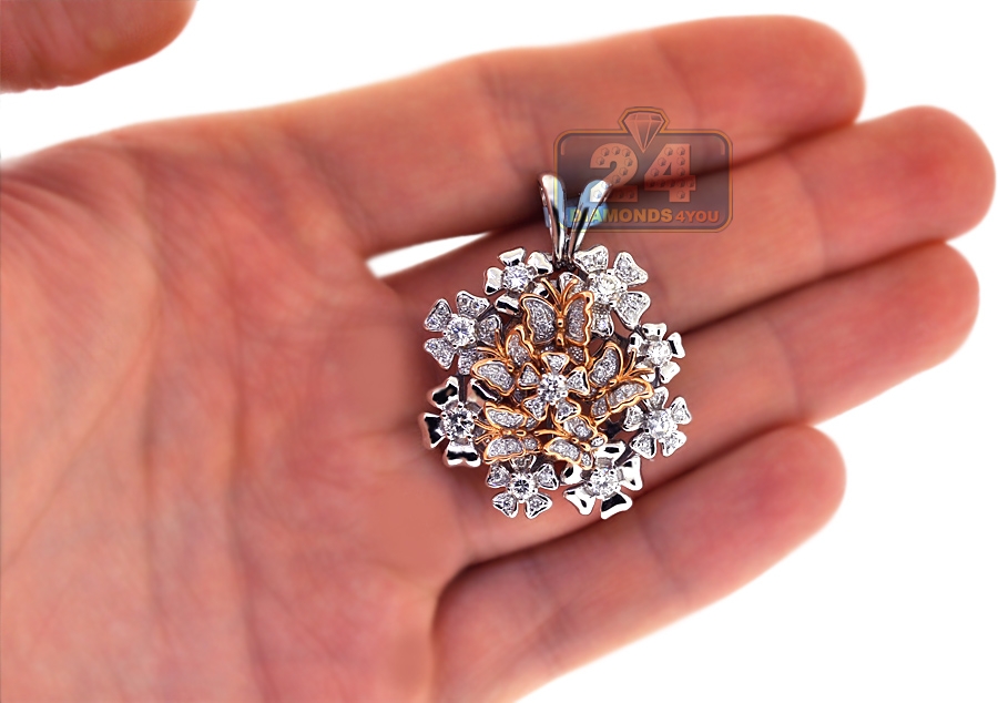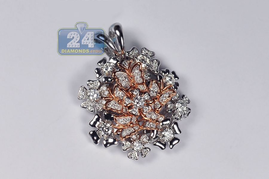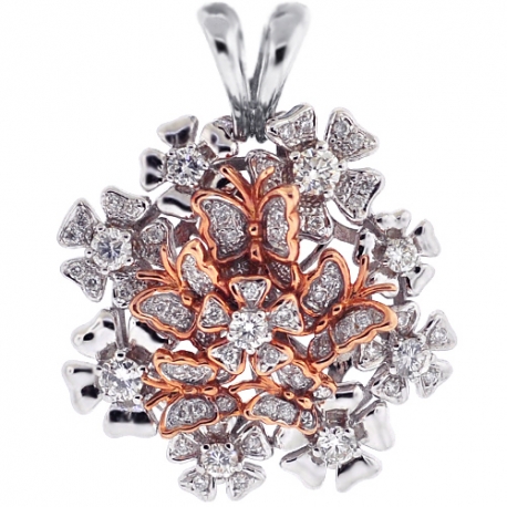18K Two Tone Gold 1.70 ct Diamond Flower Butterfly Pendant