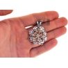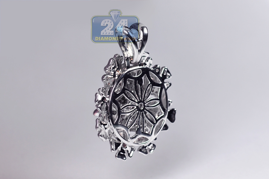 Our diamond butterfly on flower pendant is a lovely symbol of springtime! Ably handmade of luxurious 18k gold of white and rose colors, it's highly polished for ultra smooth look. The jewelry is encrusted with 1.70 carat of icy white round brilliant-cut natural diamonds. It measures 40 mm in total length, and flower itself is 31 x 31 mm. The bail is suitable for a chain of up to 4 mm. This women's floral necklace will add colorful details to your look any time of the year!