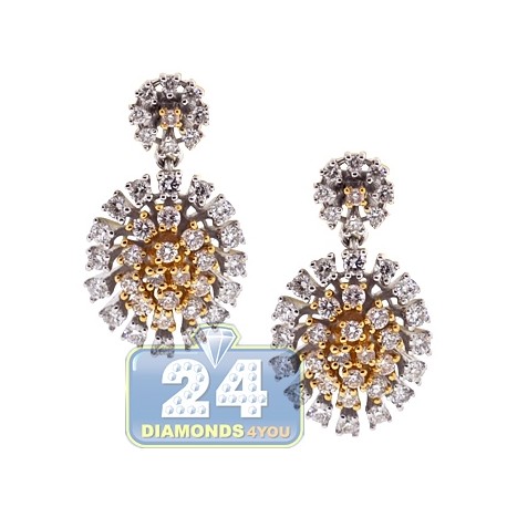 18K Two Tone Gold 1.00 ct Diamond Cluster Womens Drop Earrings
