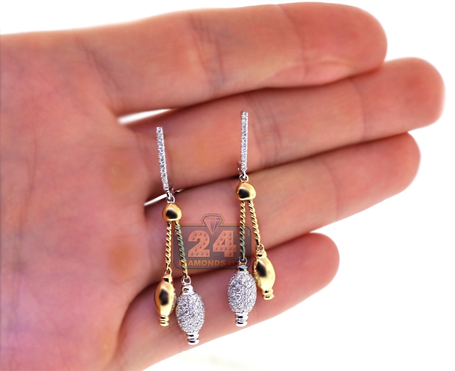 18K Two Tone Gold 1.05 ct Diamond Womens Dual Teardrop Earrings