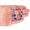 18K Two Tone Gold 11.47 ct Blue Sapphire Diamond Drop Earrings