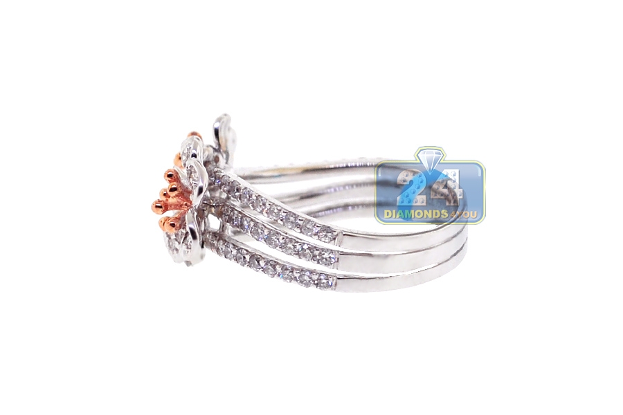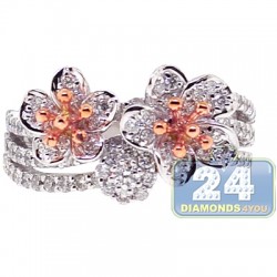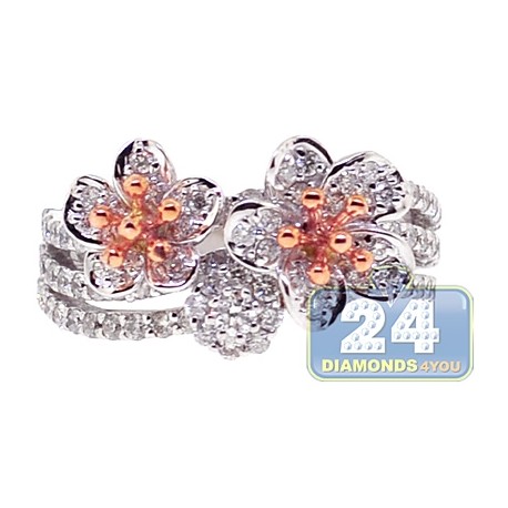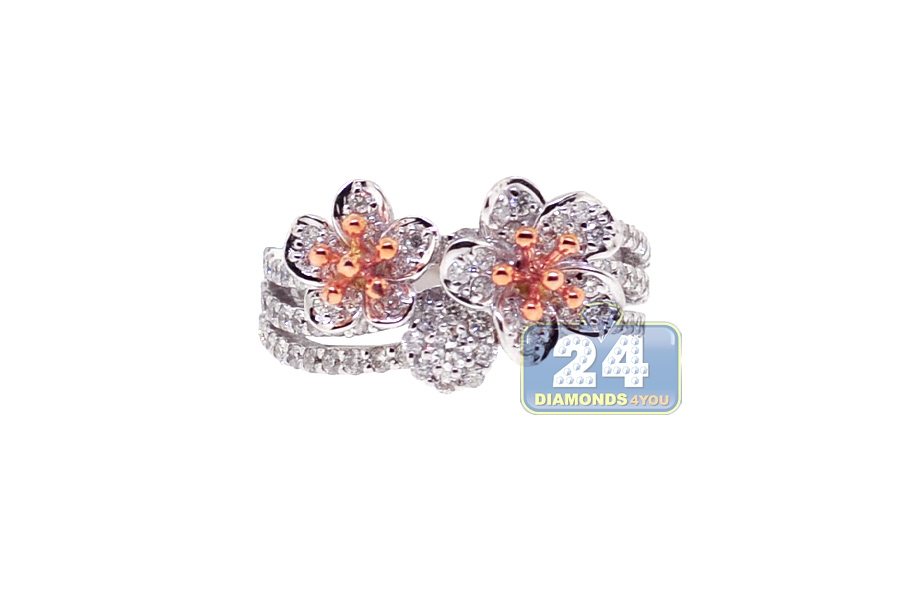 18K Two Tone Gold 1.10 ct Diamond Womens Multi Flower Ring