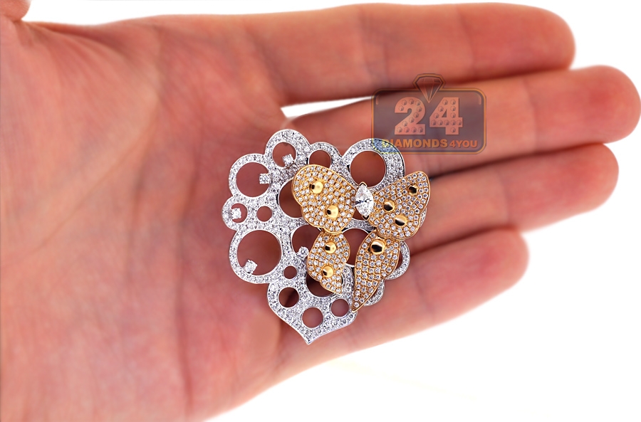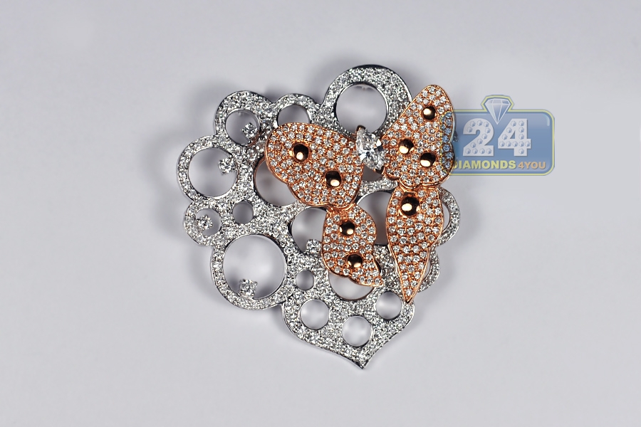 18K Two Tone Gold 3.39 ct Diamond Womens Butterfly Pendant