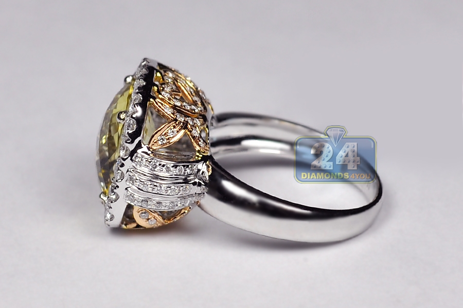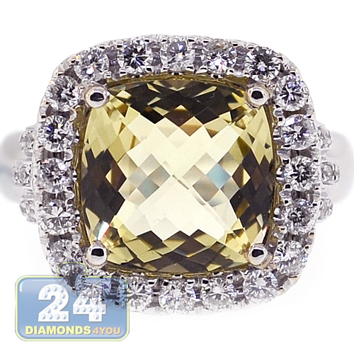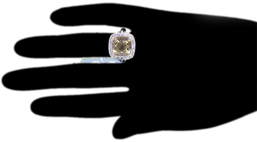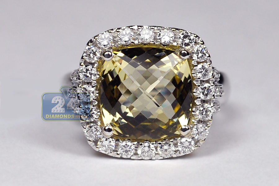 18K Two Tone Gold 5.68 ct Yellow Quartz Diamond Womens Ring
