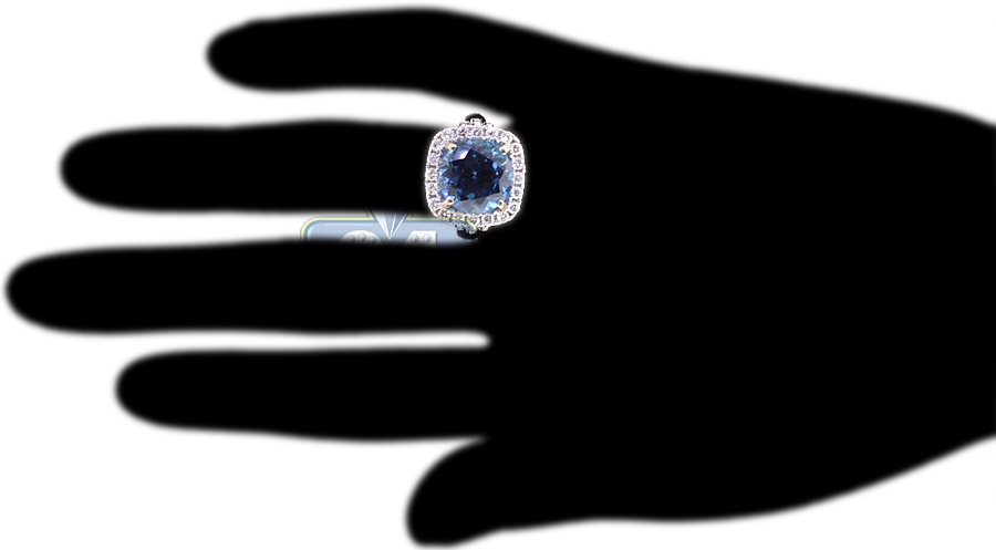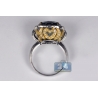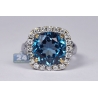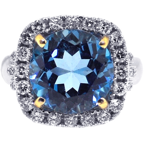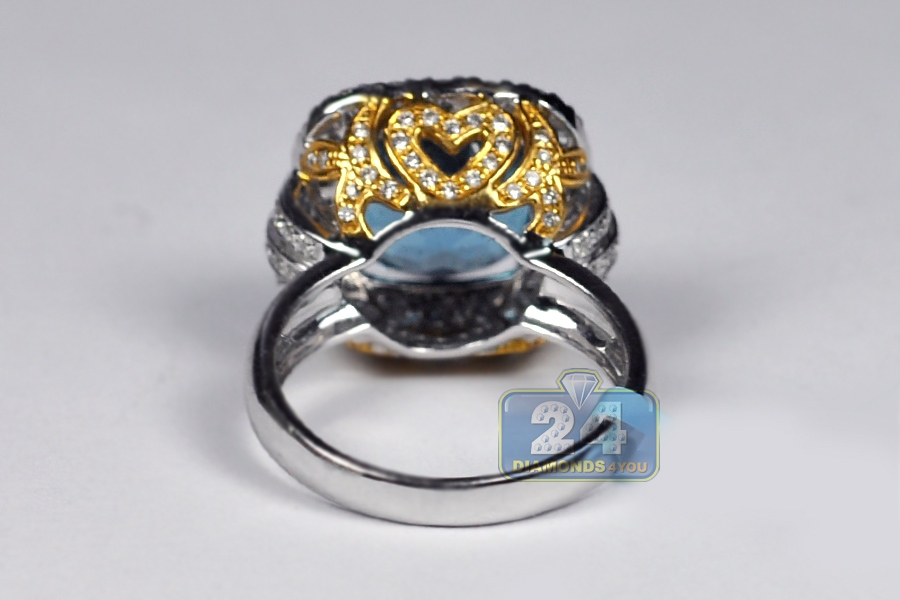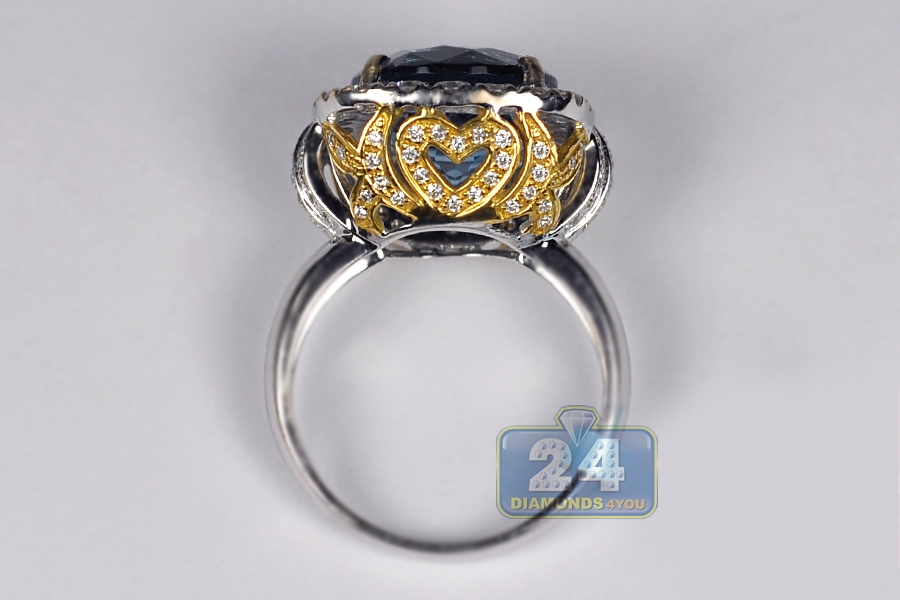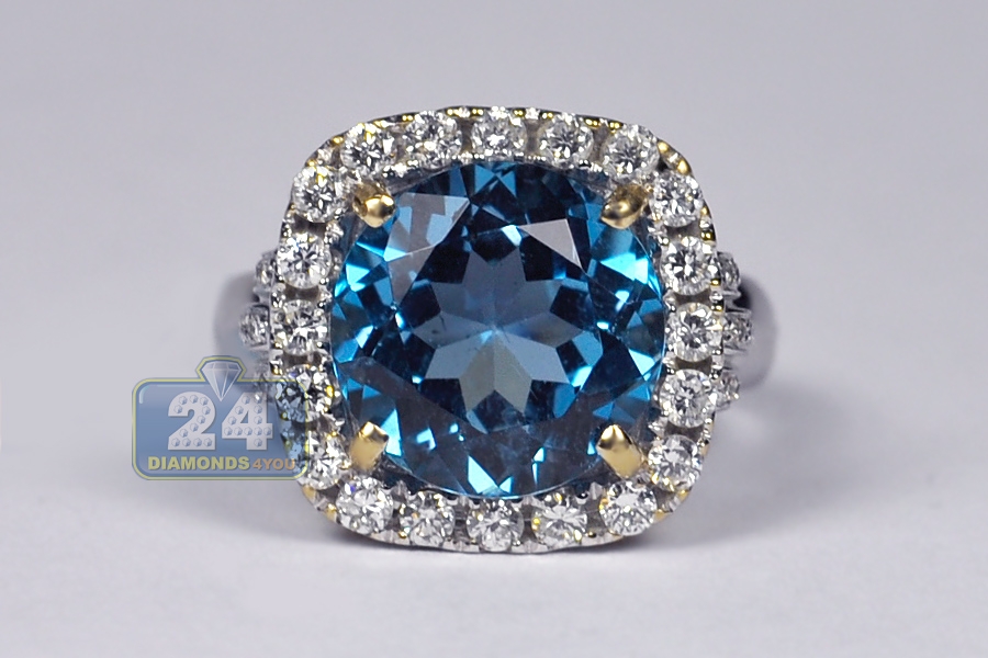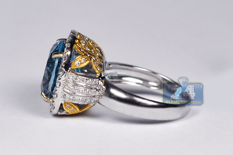 18K Two Tone Gold 6.10 ct Blue Topaz Diamond Womens Ring