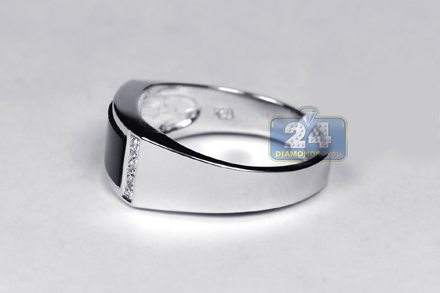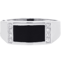 18K White Gold 0.12 ct Diamond Black Onyx Mens Ring