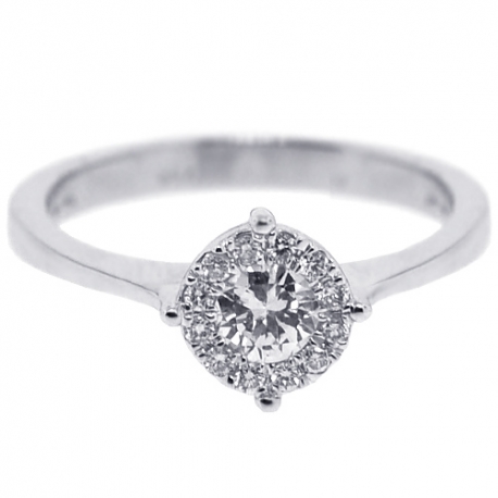 Enjoy blushing and stylish tribute to romance with this diamond solitaire ring! It's expertly created from lustrous 18k white gold, and encrusted with 0.39 carat of icy white round brilliant-cut diamonds. This diamond engagement ring will certainly appeal to your aesthetic sense!