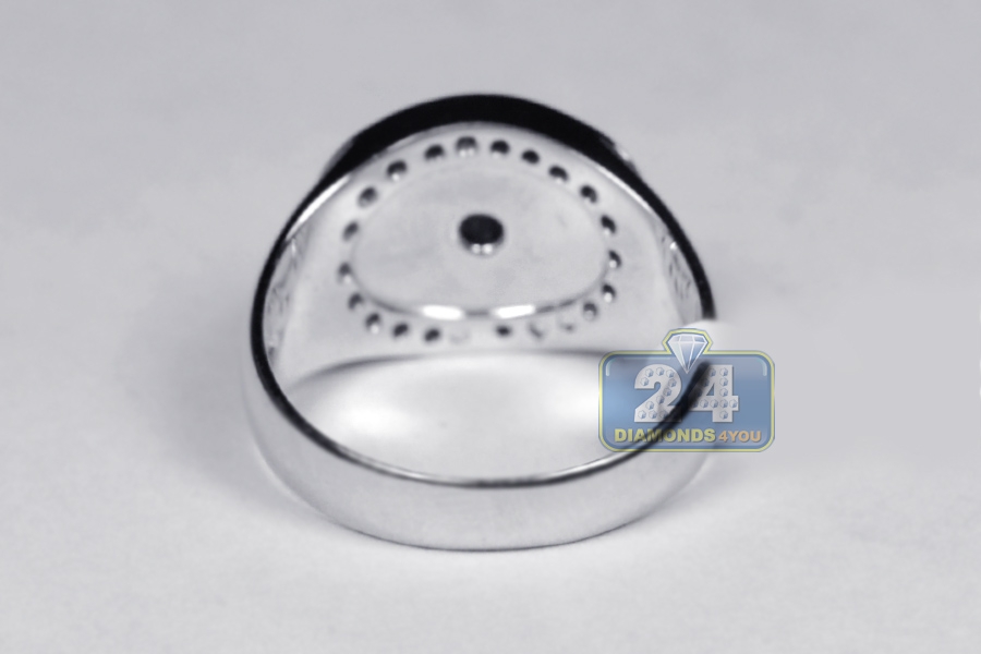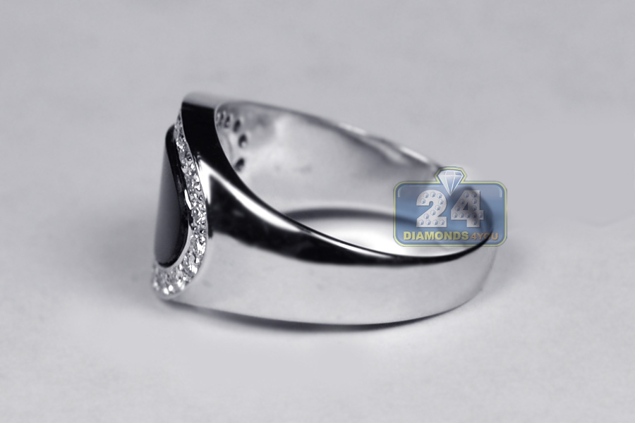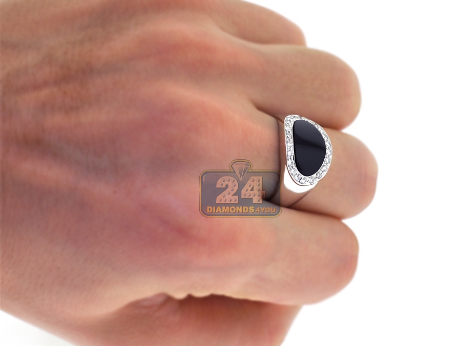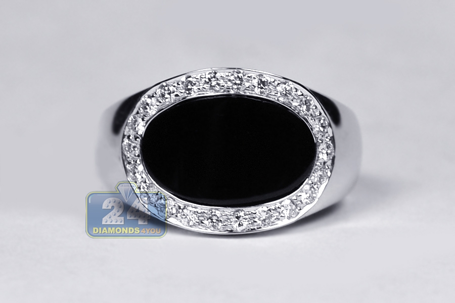 18K White Gold 0.43 ct Diamond Oval Onyx Mens Ring