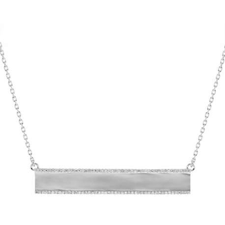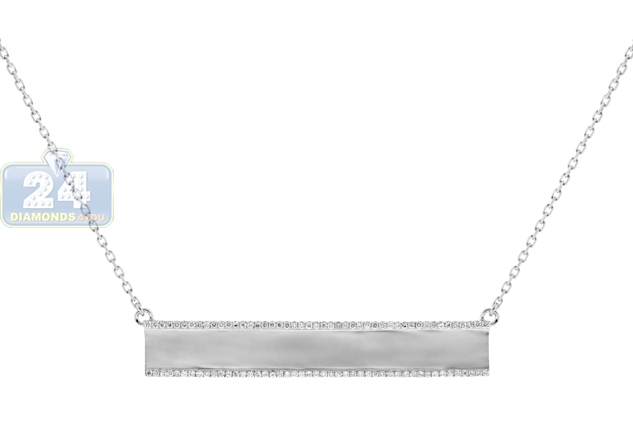 Classic and timeless, our outstanding diamond ID necklace for women sparkles a lot! It is professionally crafted in lustrous 18k white gold; and the name bar is set with two rows of icy white round brilliant-cut genuine diamond totaling 0.45 carat. The total length of the piece is 18 inches that is secured with a safe lobster claw clasp. Personalize this gorgeous necklace with your favorite name, date, verse...