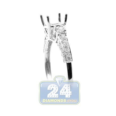 Show your feelings and design your own engagement ring using this gorgeous semi mount! Our setting showcases an antique styled design and artfully handmade of pure 18k white gold with perfectly polished finish. Its shank is masterly accented with top quality round cut diamonds weighting 0.44 carat in total. A shimmering crown can easily hold any round or square shaped center stone of your choice. The side of the setting are beautifully highlighted by natural brilliants on each side.