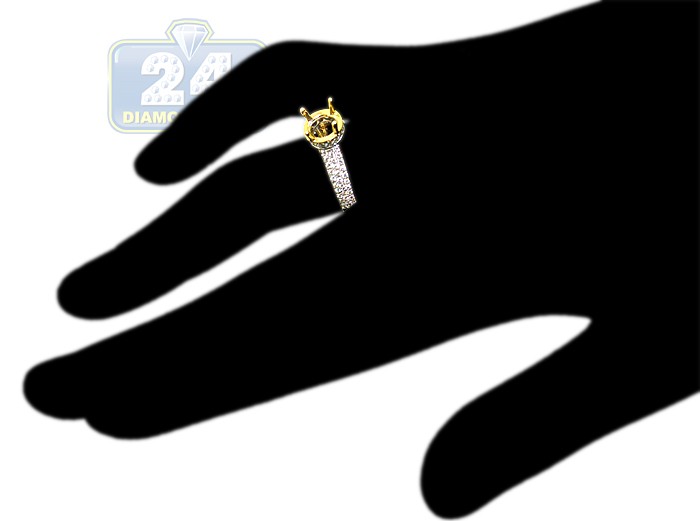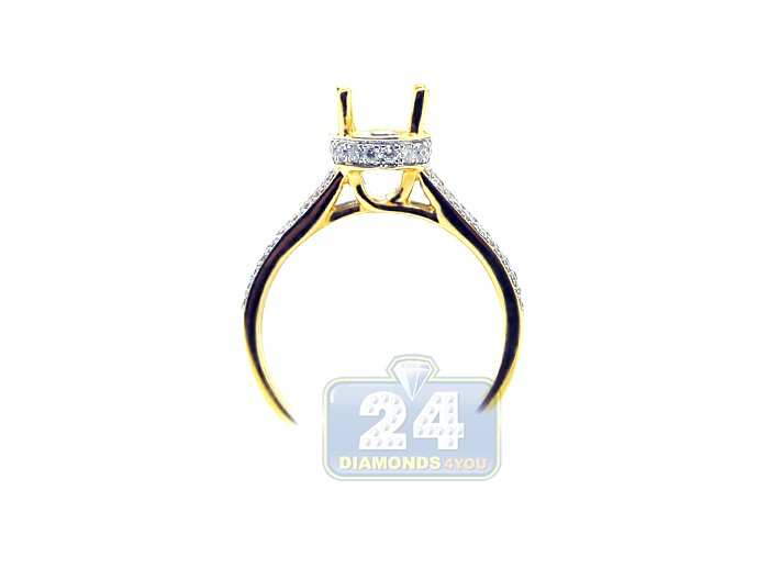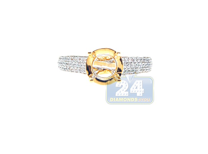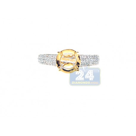 Show that you are ready to spend a lifetime with her when you propose with this breathtaking engagement setting! The never endless beauty is professionally crafted in warming 18k yellow gold with highly polished finish. Remarkably sparkling shank as well as delicate crown which holds round shaped center stone of your choice shimmers with icy white brilliants of F-G color and VS1-VS2 clarity.