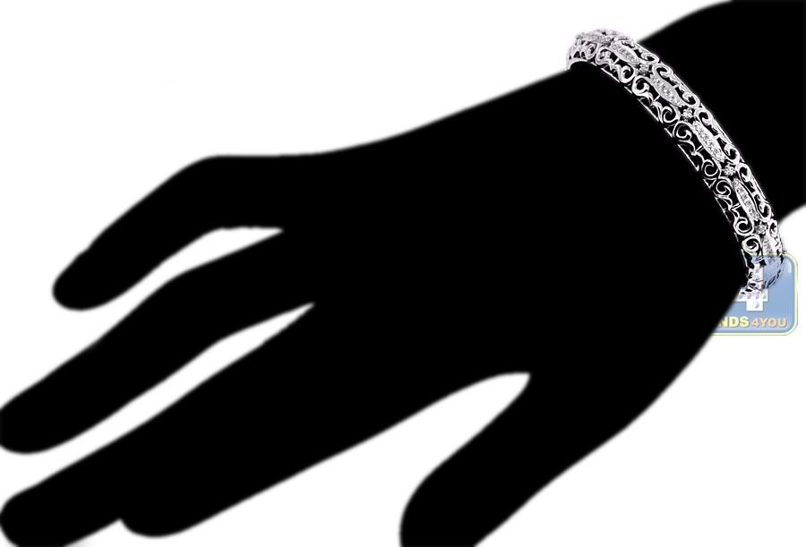 18K White Gold 0.55 ct Diamond Womens Filigree Bangle Bracelet