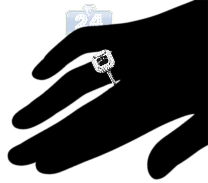 A special lady deserves no less than a special proposal with this custom made engagement setting designed in cool 18k white gold with perfectly polished finish! Antique styled shank is masterly handset with six twinkling round cut diamonds on each side. Absolutely beautiful crown is ready to be accented with any diamond or precious square shaped stone of your choice. All round cut brilliants are weighting 0.69 carat in total.