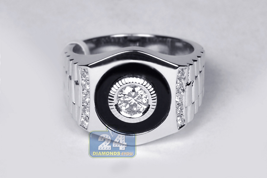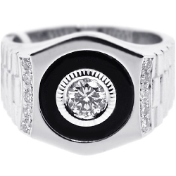 18K White Gold 0.70 ct Diamond Onyx Mens Solitaire Ring