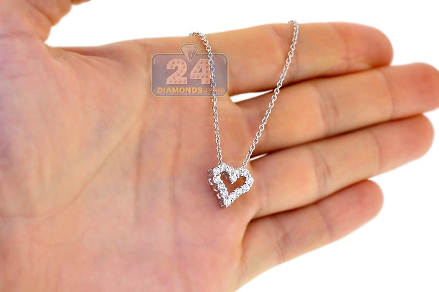 18K White Gold 0.75 ct Diamond Heart Pendant Necklace 18 inch