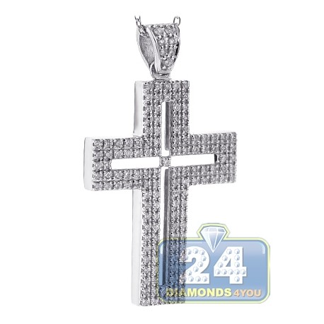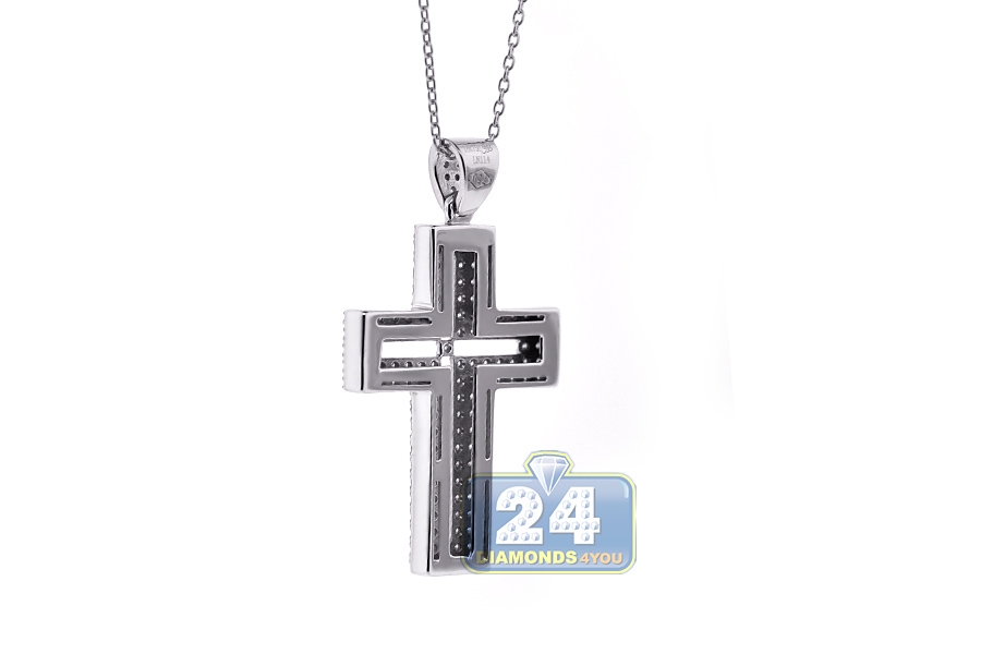 18K White Gold 0.77 ct Diamond Latin Cross Mens Necklace