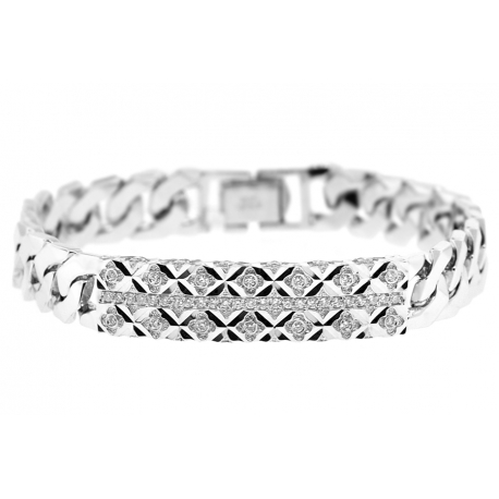 18K White Gold 0.80 ct Diamond Cuban Mens ID Bracelet 8 Inches