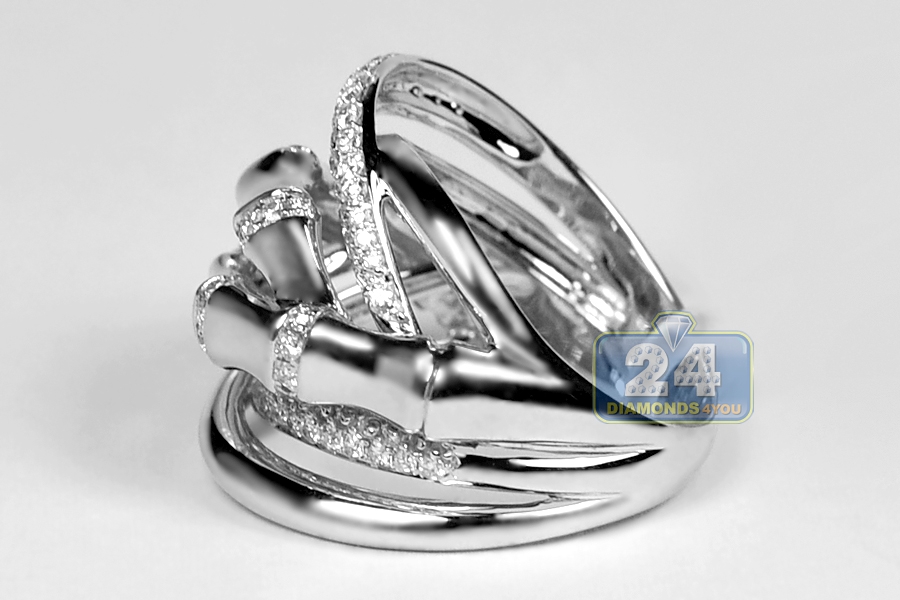 18K White Gold 0.83 ct Diamond Womens Bamboo Ring