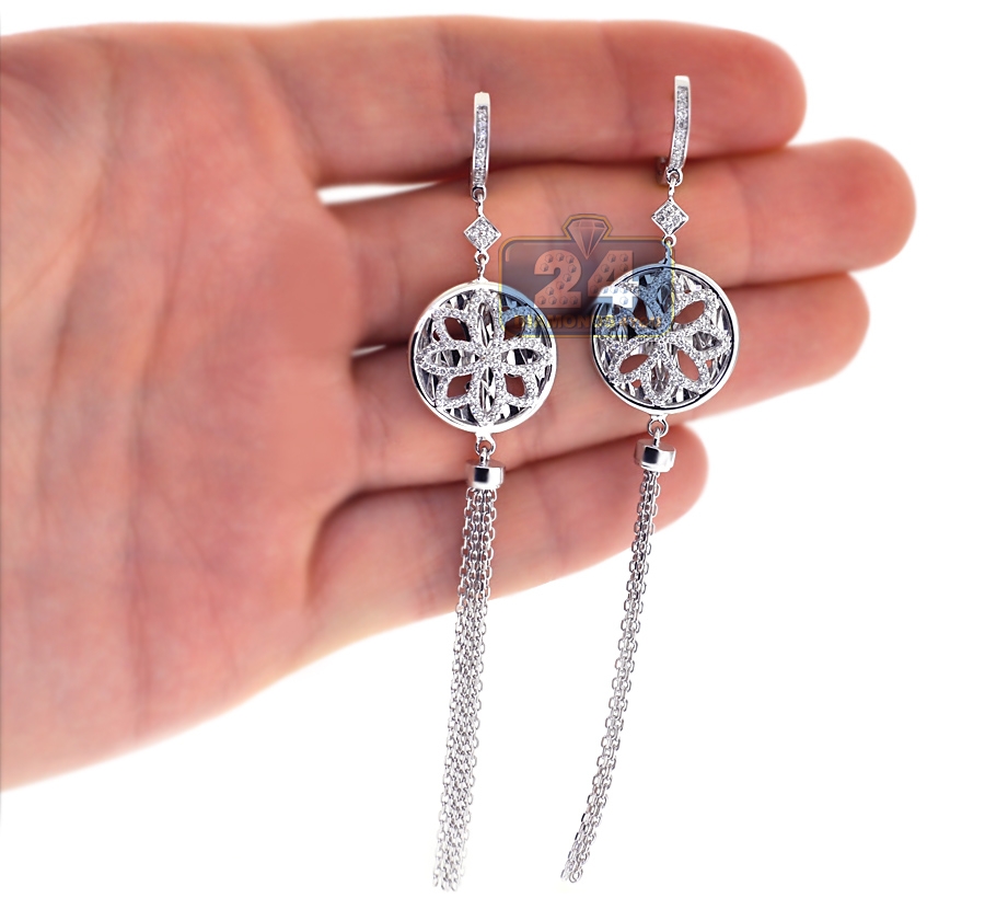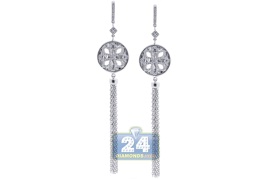 18K White Gold 0.90 ct Diamond Womens Dangle Earrings