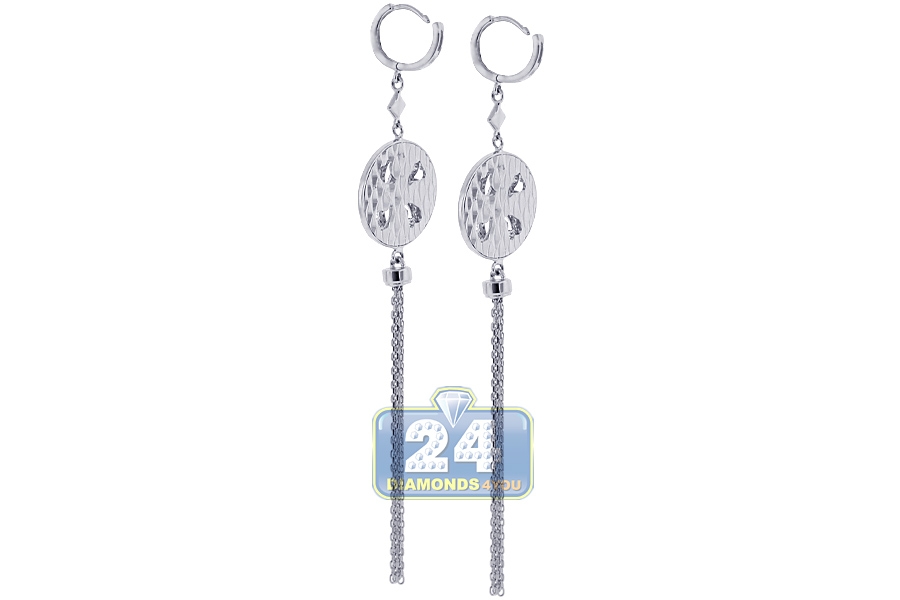 Our pair of breathtaking diamond dangle earrings elevates any attire! Able created from cool 18k white gold, they are accented with 0.90 carat of icy white round brilliant-cut natural diamonds. Our women's mesh earrings have hanging length of 100 mm and width of 18 mm. These drop earrings are an elegant choice for women!