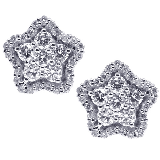 18K White Gold 0.91 ct Diamond Star Womens Stud Earrings