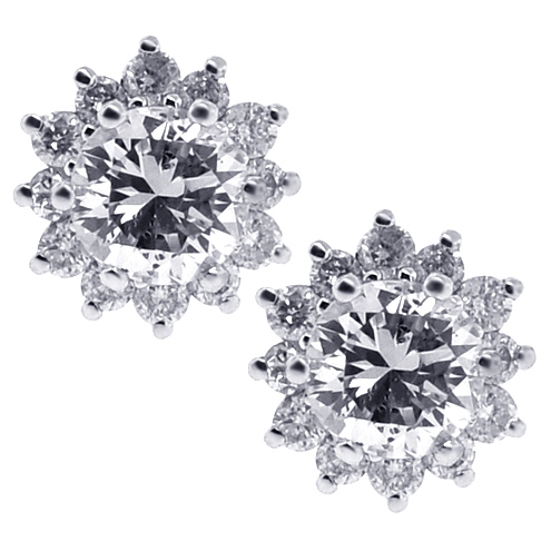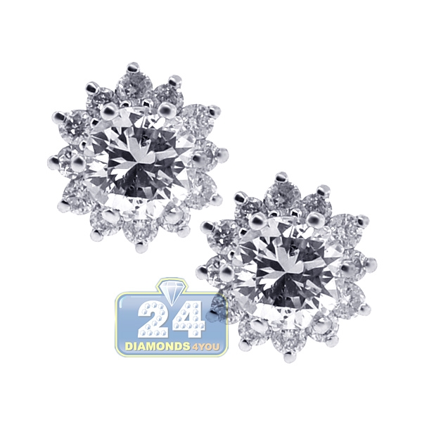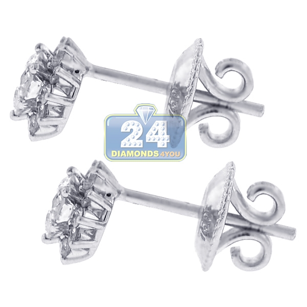 18K White Gold 0.95 ct Diamond Flower Womens Stud Earrings