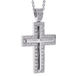 18K White Gold 0.96 ct Diamond Latin Cross Mens Pendant