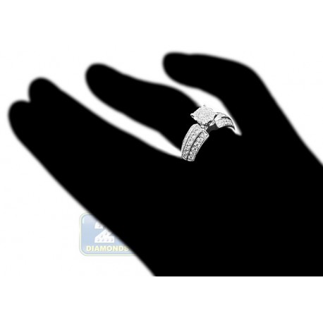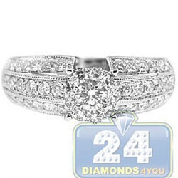 18K White Gold 0.98 ct Diamond Cluster Vintage Engagement Ring