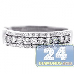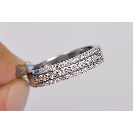Add some vintage vibe to your daily look! This women's band shines with elegance and class! It is artfully crafted from pure 18k white gold with highly polished finish, and expertly handset with one large and two smaller rows of genuine white round cut diamonds weighting approximately 0.45 carat in total. Each brilliant features SI1-SI2 clarity and G-H color grades.