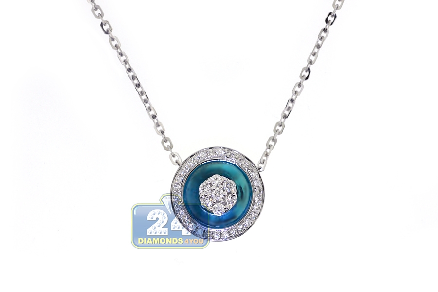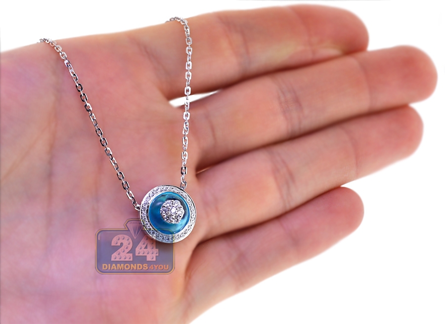 18K White Gold 0.60 ct Diamond Blue Evil Eye Womens Necklace