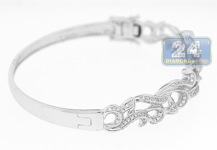 18K White Gold 1.00 ct Diamond Womens Vintage Bangle Bracelet