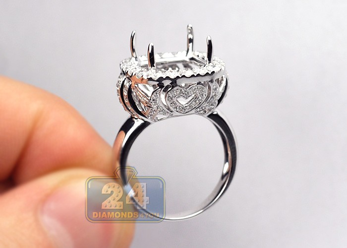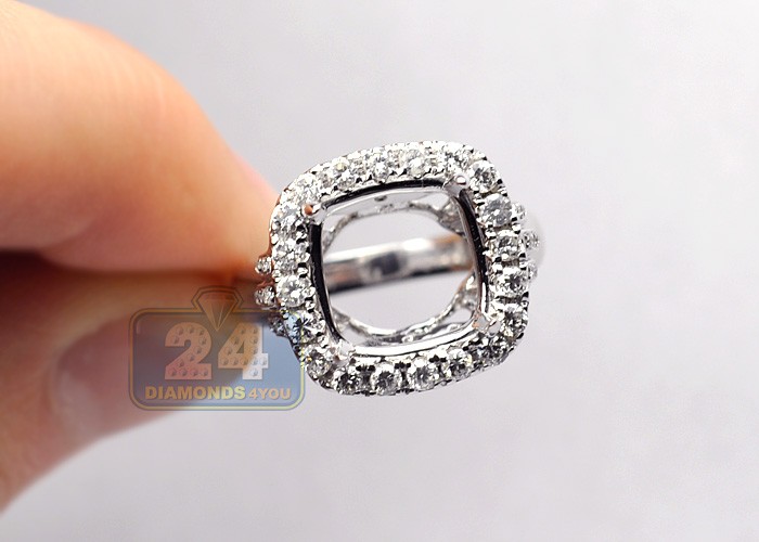 18K White Gold 1.06 ct Diamond Large Semi Mount Setting Ring