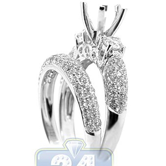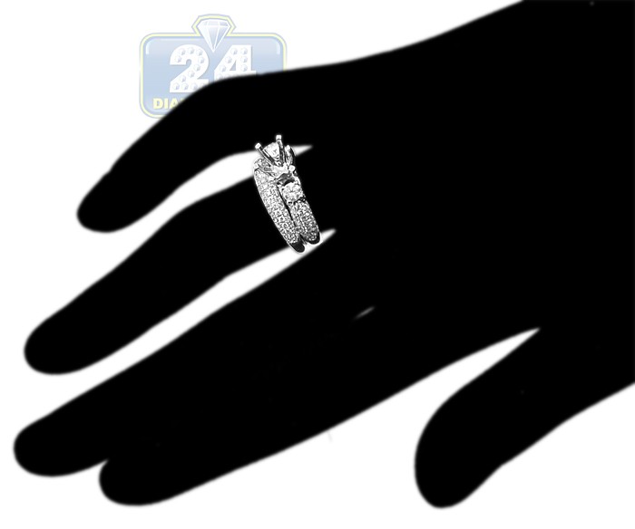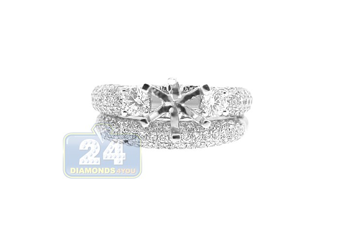 18K Gold 1.08 ct Diamond Engagement Wedding Semi Mount Ring Set