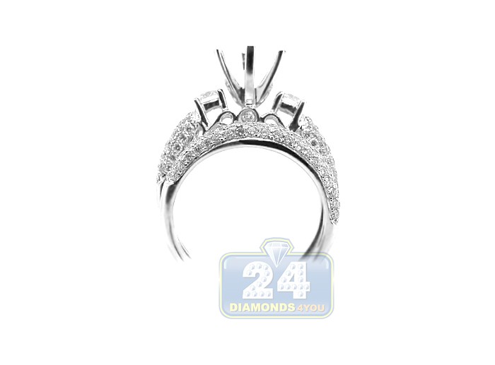 Melt her heart with these gorgeous diamond engagement setting and wedding band! Our bridal set has exceptional beauty and brilliance! The luxurious semi mount features absolutely sparkling white round brilliant cut diamonds that are pave set around the centerpiece crown. It fits a round shape stone of your choice. Perfectly matching wedding band sparkles with VS1-VS2 clarity and F-G diamonds that are skillfully hand set half way around the ring. Enjoy such a timeless design and exceptional craftsmanship of this bridal jewelry set!